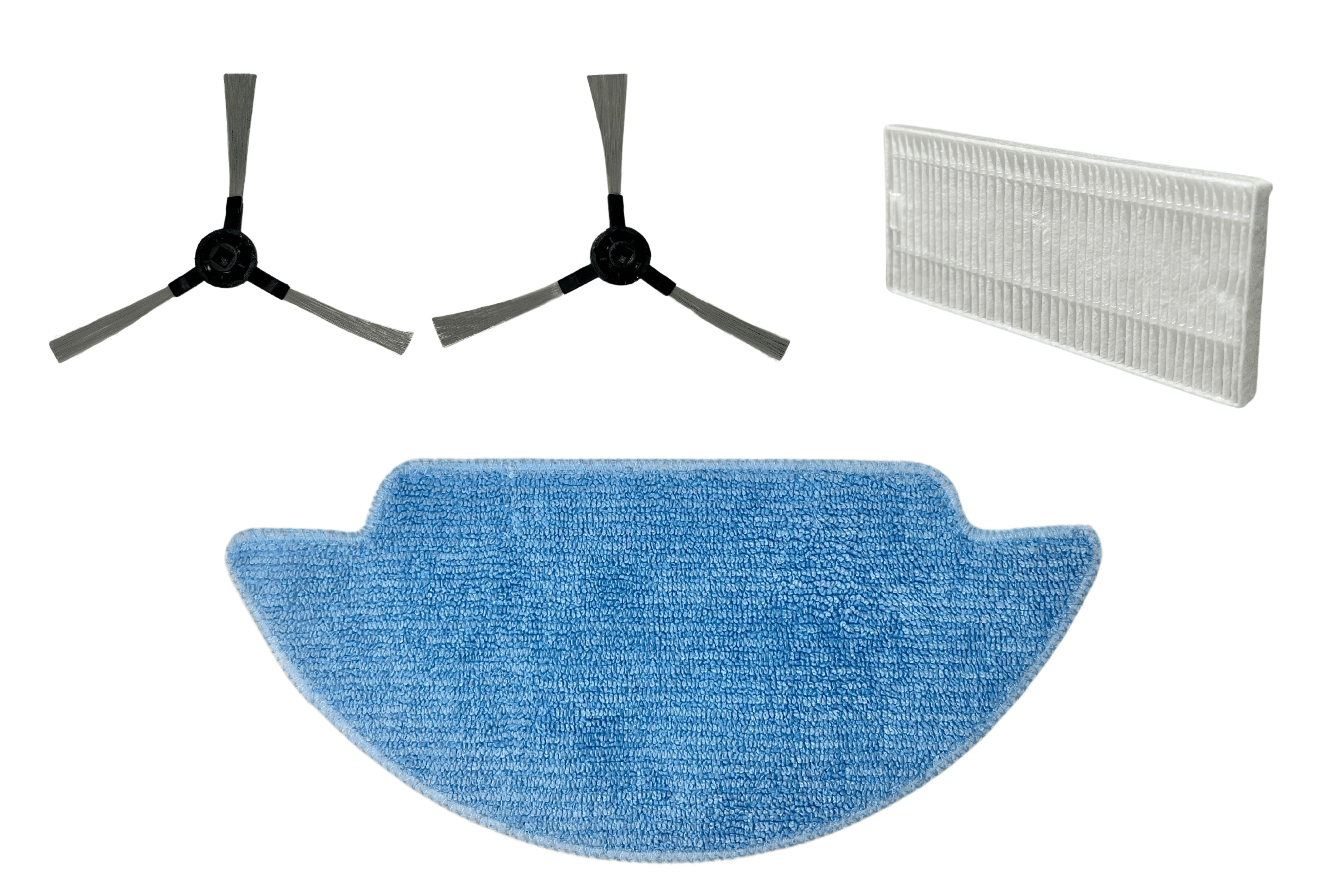 1 serpillère XL + 2 brosses latérales d’angle + 1 filtre HEPA